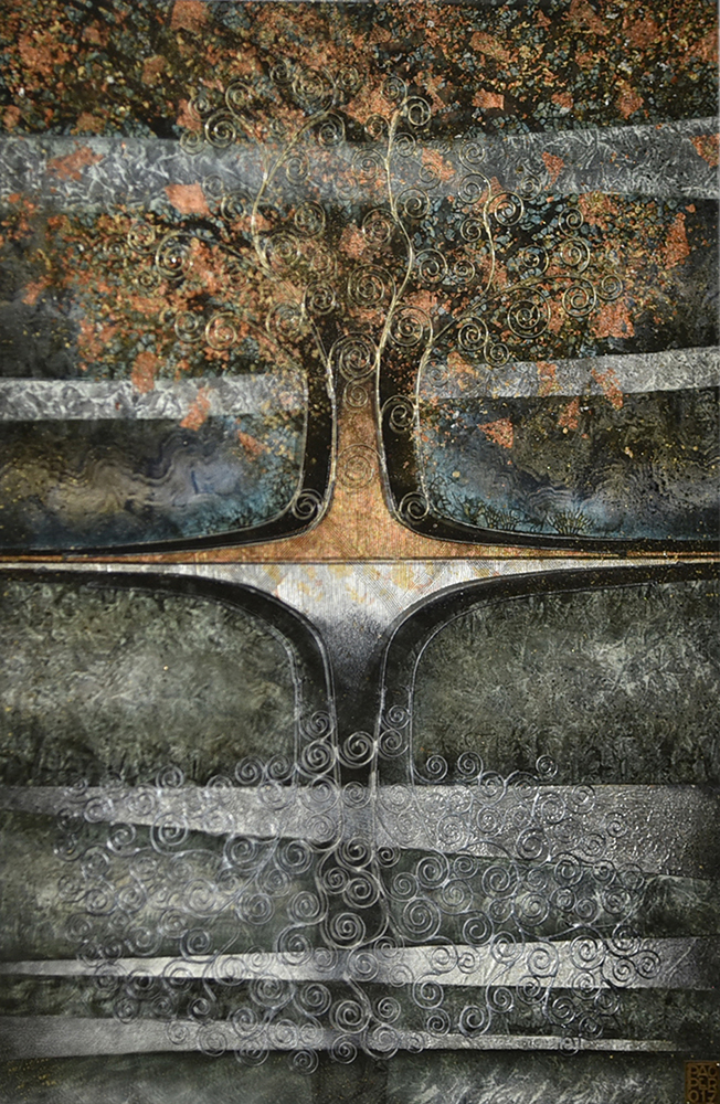 L'albero della vita - olio-metallo e foglia d'oro