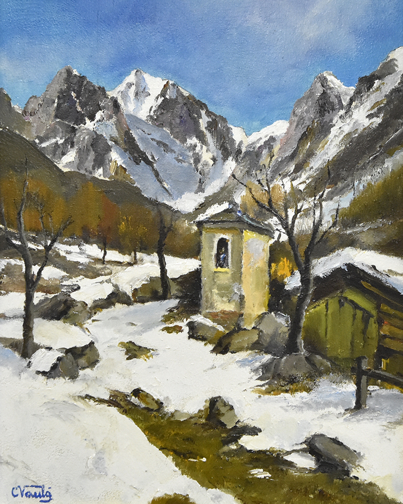 Cappelletta tra la neve - olio su tavola