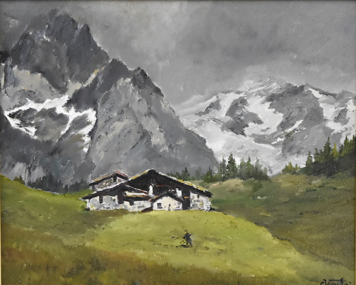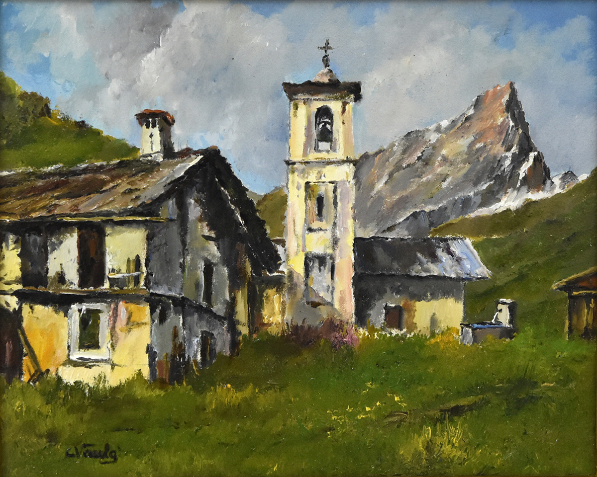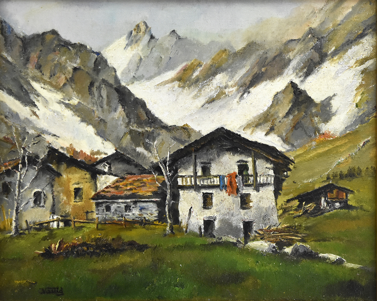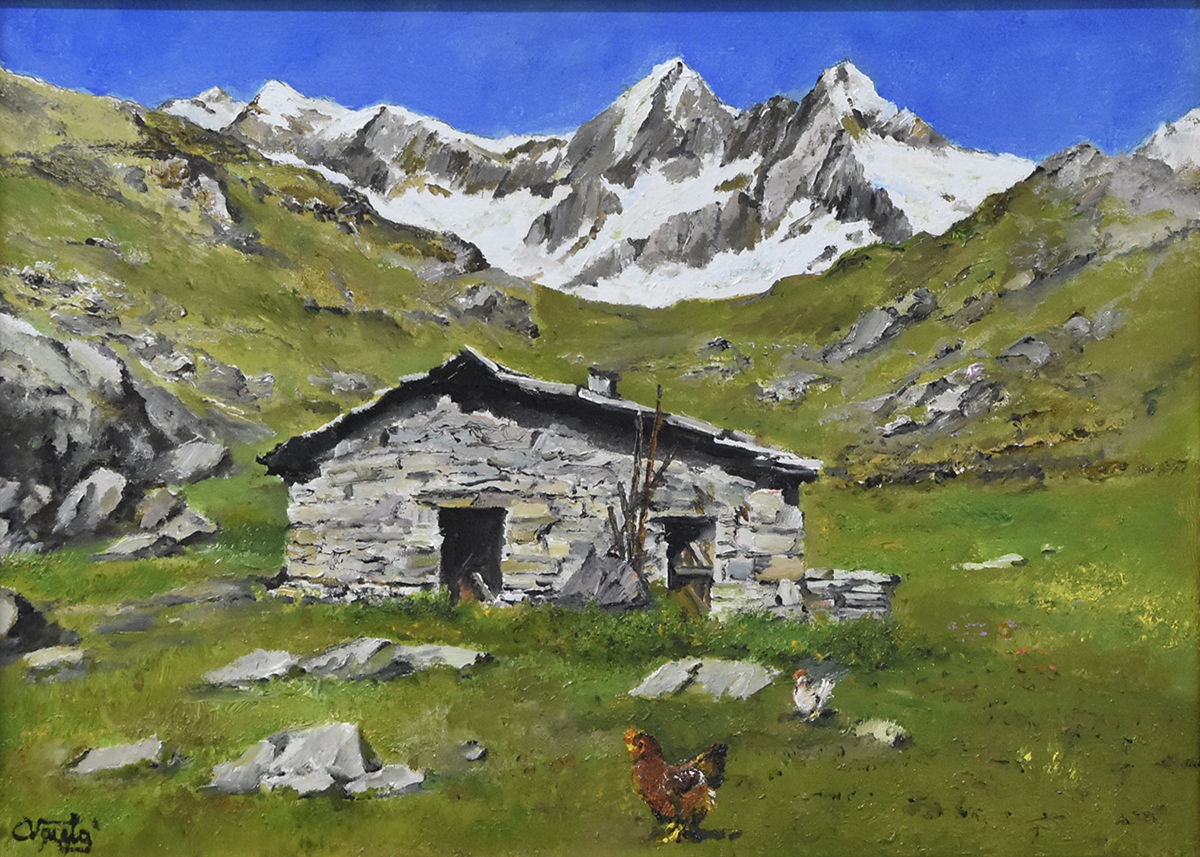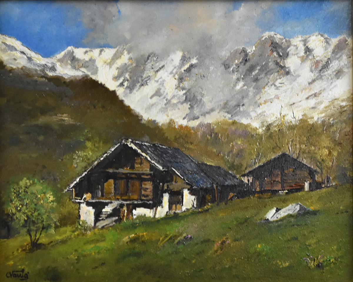 Case Walser ai piedi del monviso - olio su tavola