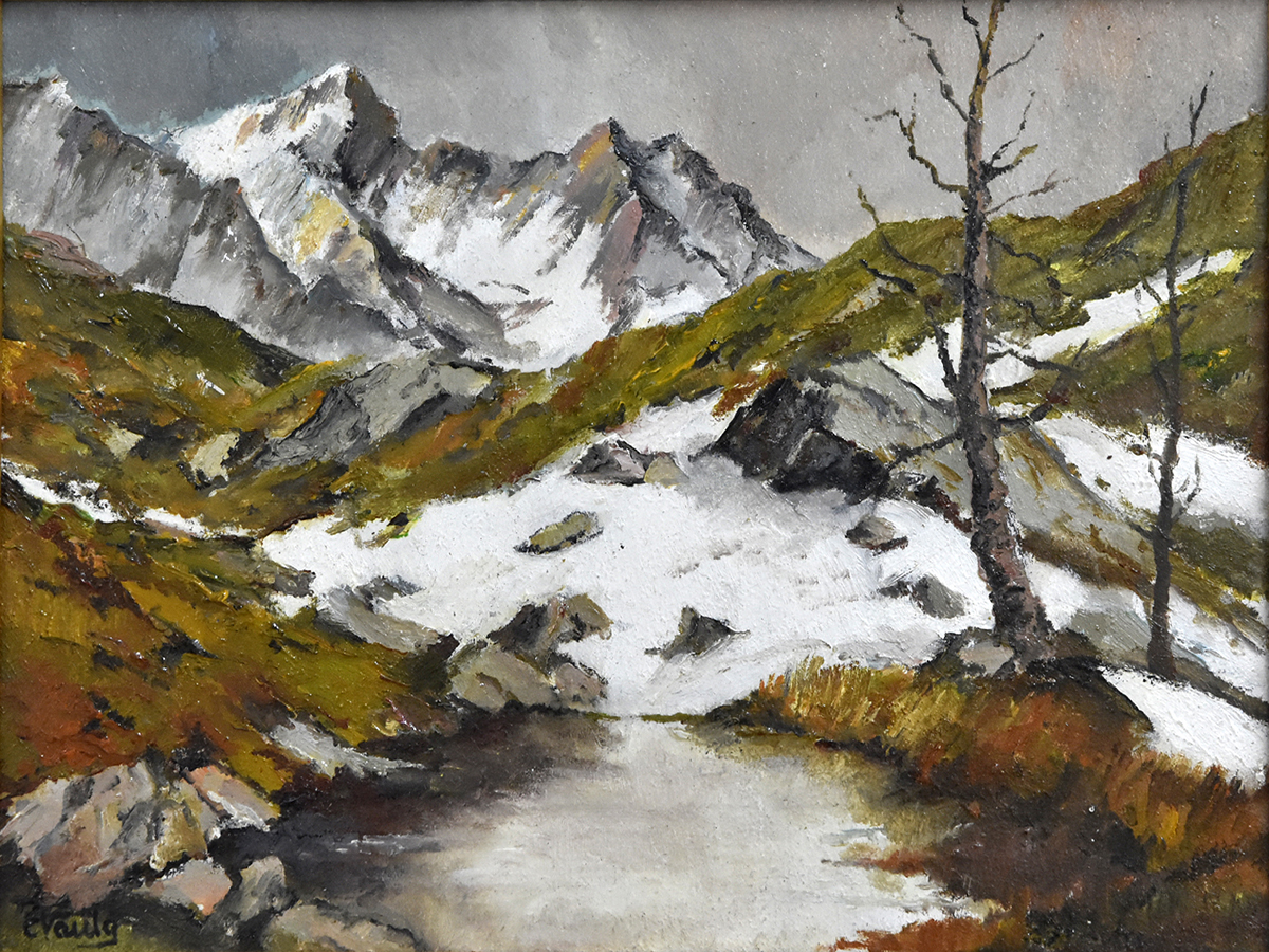 Il nevaio presso la sorgente - olio su tavola